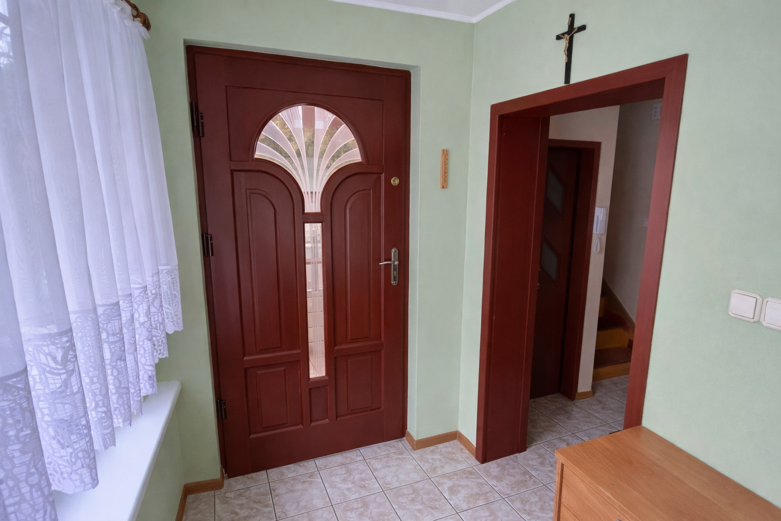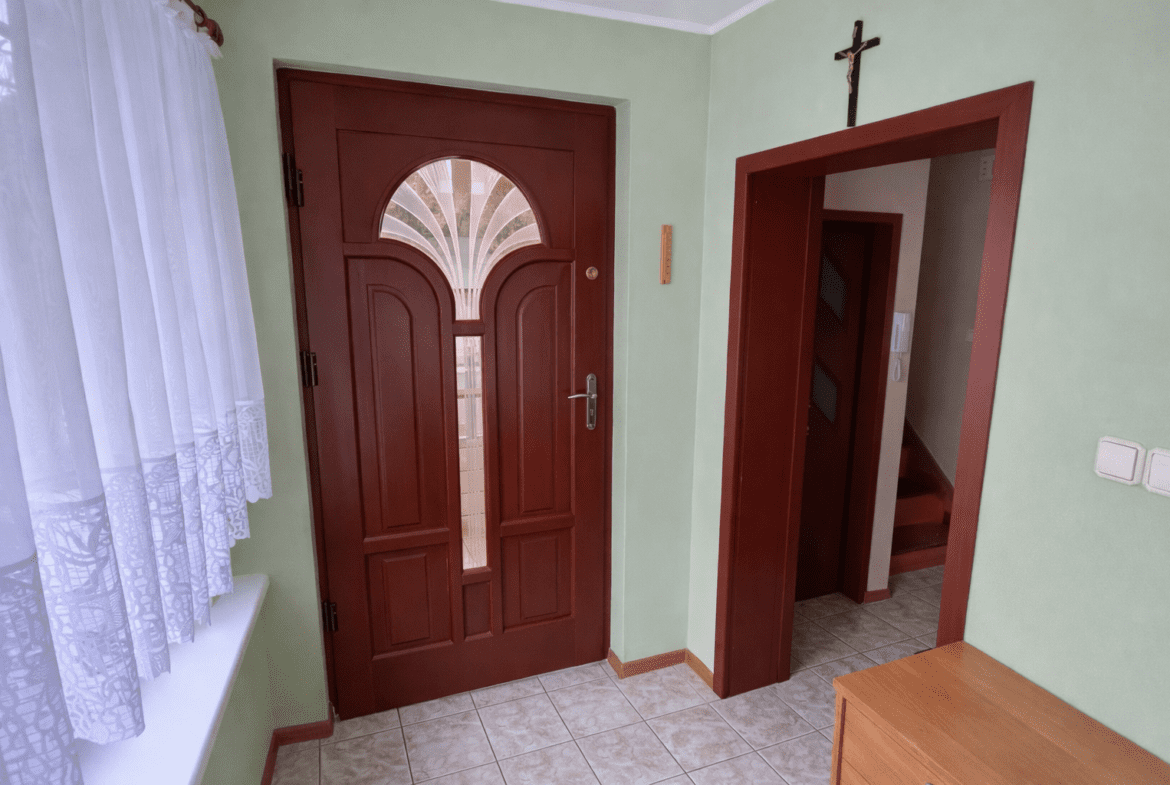 Dom piętrowy o przemyślanym i funkcjonalnym układzie pomieszczeń, zapewniający komfortowe warunki do życia dla rodziny. Bryła budynku jest zadbana, a elewacja wykończona sidingiem gwarantuje trwałość oraz minimalne koszty konserwacji.