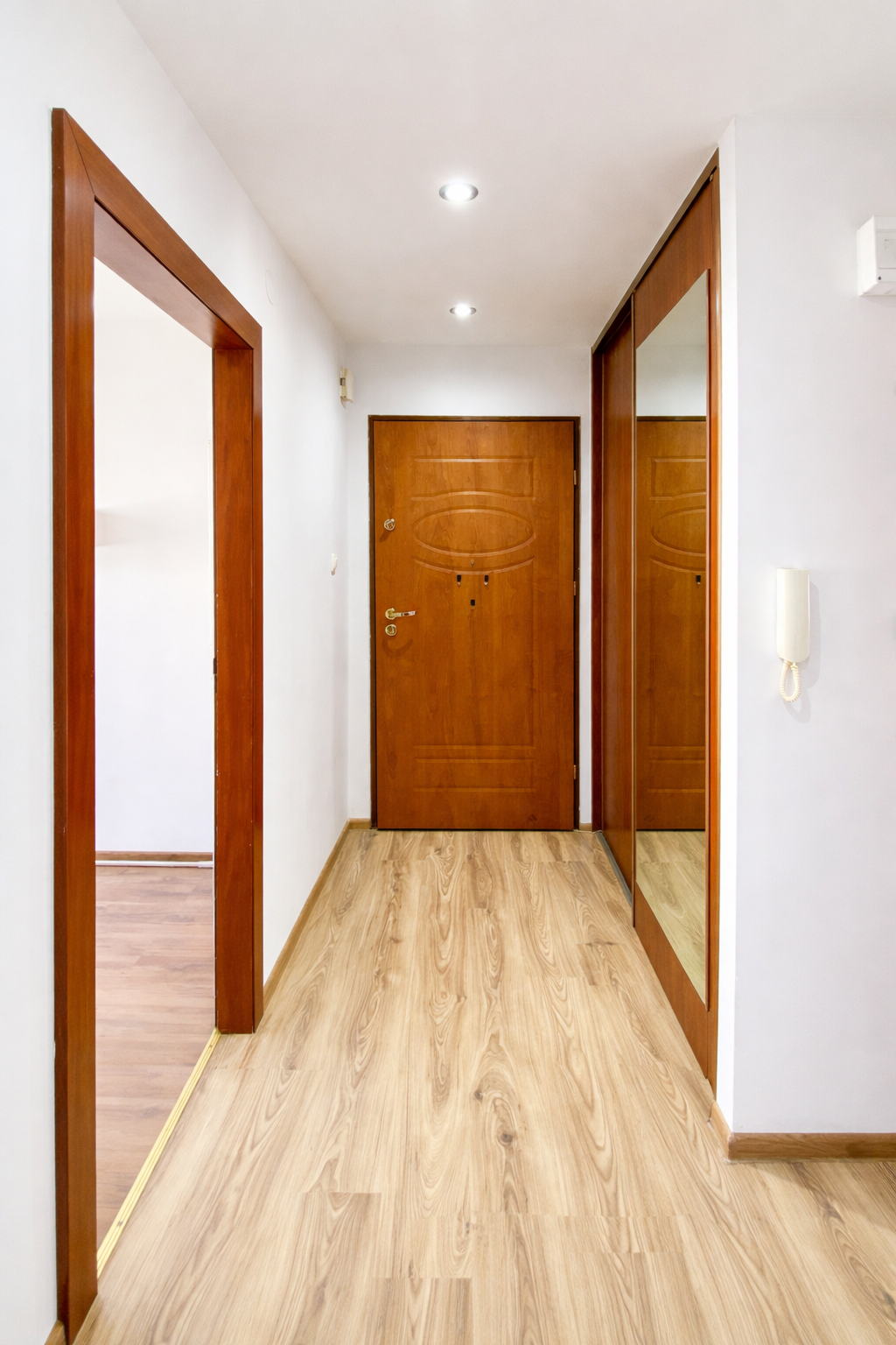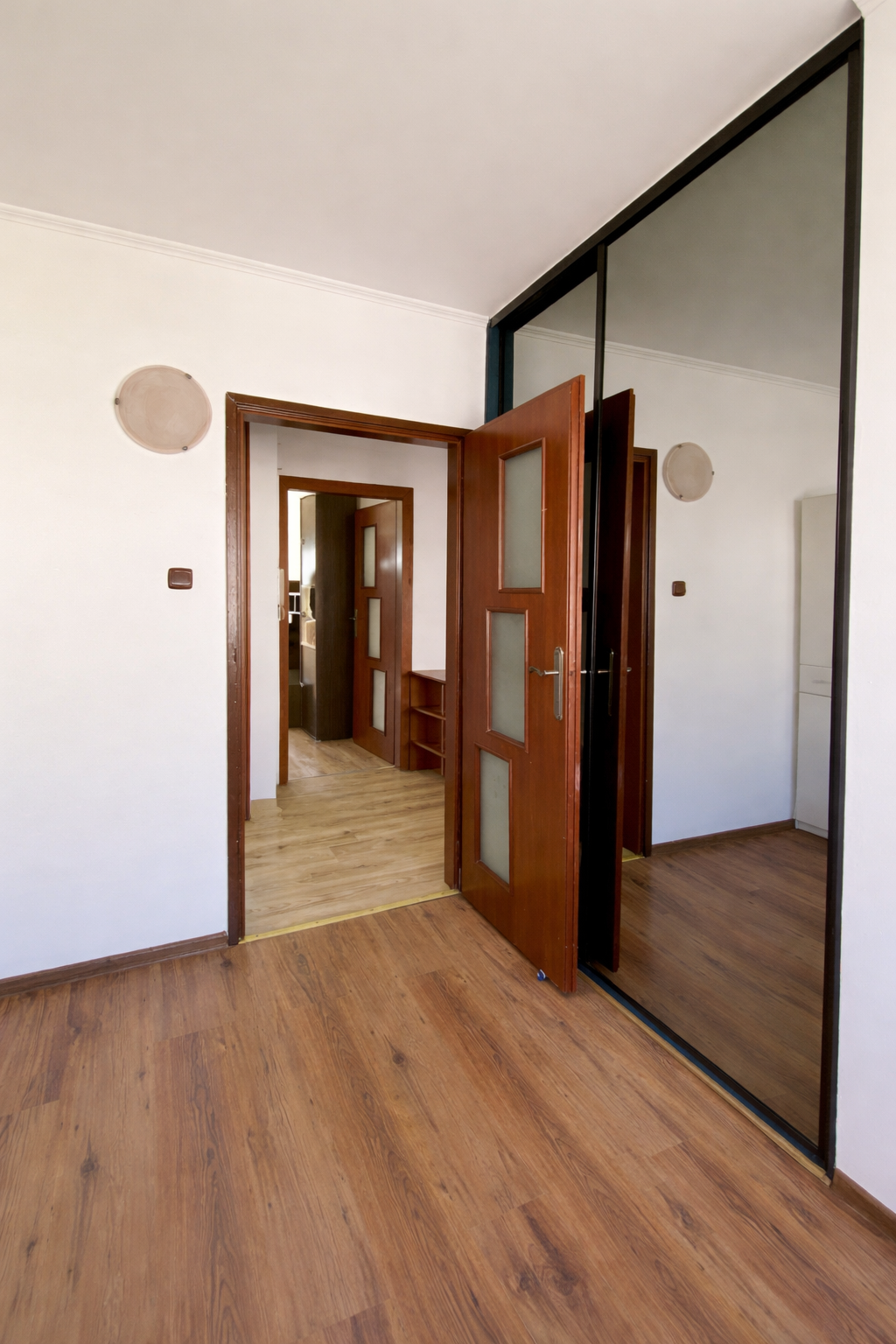 We wszystkich pomieszczeniach prócz łazienki oraz kuchni znajdują się panele podłogowe.